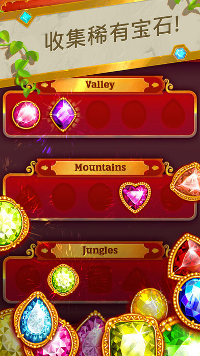 游戏以寻宝探险为故事背景,是一款消除类休闲娱乐游戏,玩家们将进入神秘而古老的埃及,在这里有数不清的璀璨宝石,不过想要得到它们却并不容易,必须要有足够的勇气和智慧。整个风格偏向古朴神秘的感觉,其中土质的底板非常富有古埃及的特色,仿佛穿越进了远古时代,看着地板上玲琅满目的宝石鲜艳夺目,虽然充满无穷的诱惑,但同时又有一丝不安,令人不敢相信财富来的如此简单。